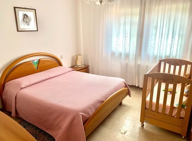 La camera matrimoniale è spaziosa e luminosa, arredata in modo semplice e funzionale. È dotata di un grande armadio per riporre comodamente i propri effetti personali e di una TV con ampia scelta di canali televisivi. Per le famiglie con bambini è disponibile una culla, utile per tenere il proprio figlio vicino in un ambiente tranquillo e sicuro.
