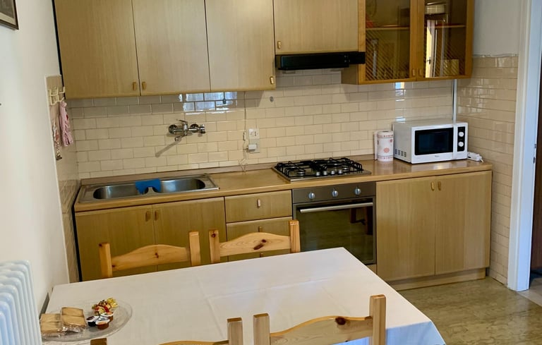 La cucina dell’Appartamento da Cristina è completamente attrezzata e pensata per offrire il massimo comfort durante il soggiorno. Dispone di piano cottura, forno, frigorifero, freezer, moka tradizionale per il caffè, stoviglie, pentole e utensili da cucina. Sono inoltre presenti sale, pepe, caffè e zucchero, utili per le prime necessità quotidiane e per gestire in autonomia i pasti durante il soggiorno.